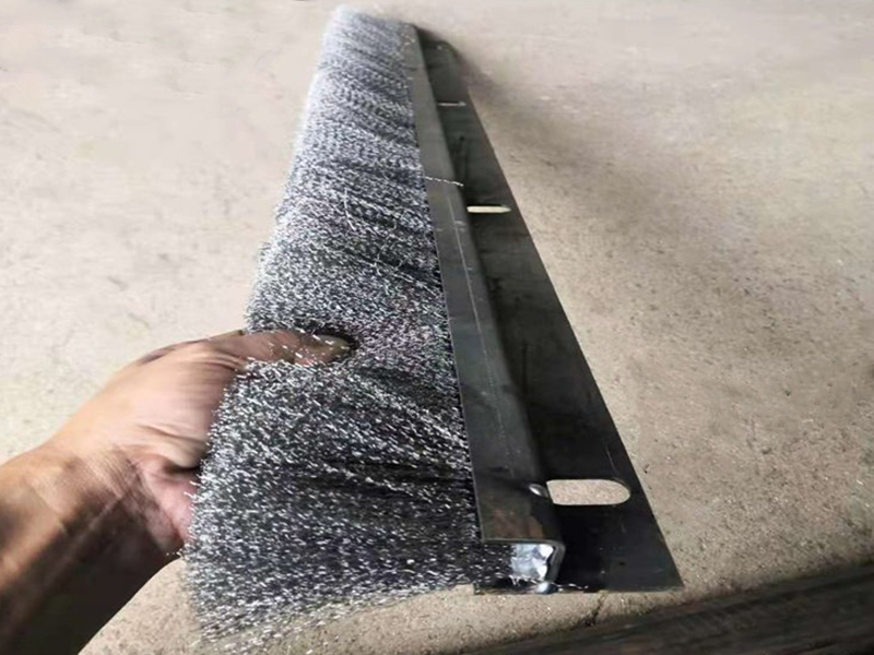 3、柔性鋼絲刷毛能密合在臺車擋板,有效的防止粉塵外溢